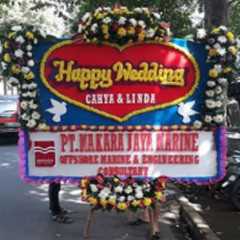 Bunga Papan Pernikahan ucapan Happy Wedding, Ukuran 2x2, Bunga Jambul Samping (Bunga Standar Lokal)