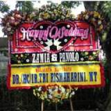 Bunga Papan Pernikahan ucapan Happy Wedding, Ukuran 2x2, Bunga Jambul Samping (Bunga Standar Lokal)