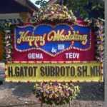 Bunga Papan Wedding ucapan Selamat Menempuh Hidup Baru, Ukuran 2x1,25, Bunga Atas Bawah (Bunga Standar Lokal)