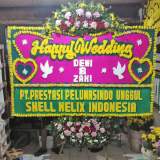 Bunga Papan Wedding ucapan Happy Wedding, Ukuran 2x1,25, Bunga Atas Bawah (Bunga Standar Lokal)