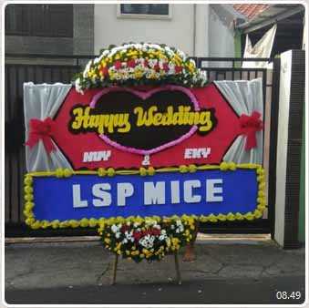 Bunga Papan Pernikahan ucapan Happy Wedding, Ukuran 2x1,25, Bunga atas bawah